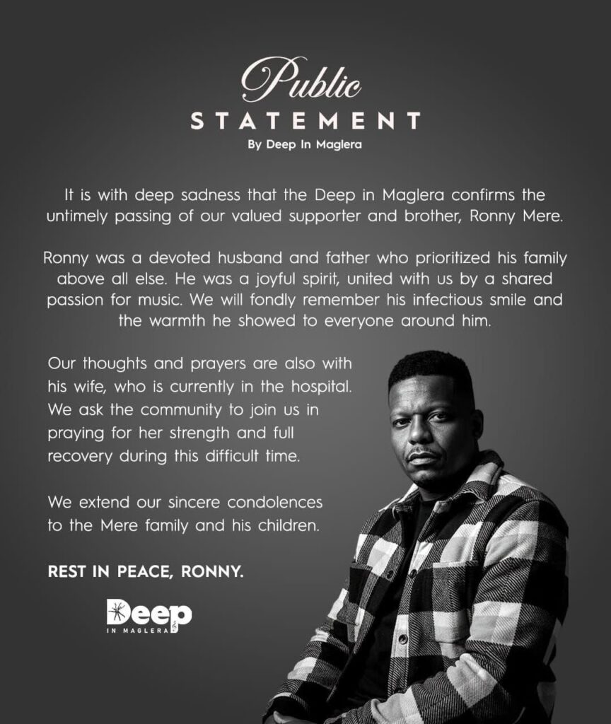 Deep in Maglera has sent out its condolences to the family and children of Klerksdorp businessman Ronny Mere on Wednesday, 04 February 2026.