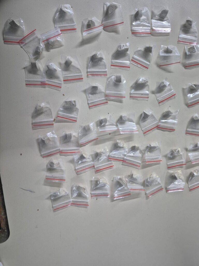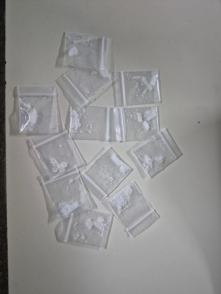 During the search, suspected drugs were found in his possession, leading to his immediate arrest.